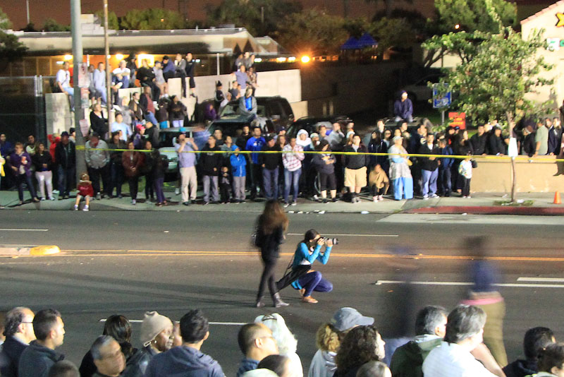 В час ночи мы приехали в Лос-Анджелес и без труда нашли место, где должен был ехать шаттл. В таких жилых районах поздно вечером на улицах довольно безлюдно, а здесь шло прямо какое-то всенародное гулянье. Предвкушая встречу с Эндевором, как со старым знакомым, мы вышли на Манчестер-Авеню, по которой он должен был вот-вот проехать. Где-то вдалеке сияли огни прожекторов, что давало представление о том, где сейчас происходит основное действие. Мы заняли удобное место на заборе, позволявшее смотреть поверх голов и машин, устроились и стали ждать.