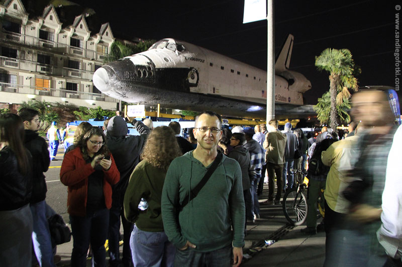 Вечером в пятницу я пришел с работы и мы стали думать, ехать ли нам в Лос-Анджелес прямо сейчас или подождать до субботы и ехать утром. По телевизору показывали уже ставшие классикой ночные кадры, Эндевора, стоящего у кафе Randy’s Donuts, перед пересечением большого шоссе i-405. По ТВ, в газетах и в интернете все говорили о том, что по ходу движения шаттла будет очень ограничено место для праздных зрителей и зевак вроде нас - улицы узкие, на тротуарах много народу не поместится, а все остальное пространство будет занято для проезда Эндевора. В итоге решили ехать ночью, предположив, что ночью людей будет меньше и будет больше шансов увидеть челнок не издалека, через головы людей, а вблизи.